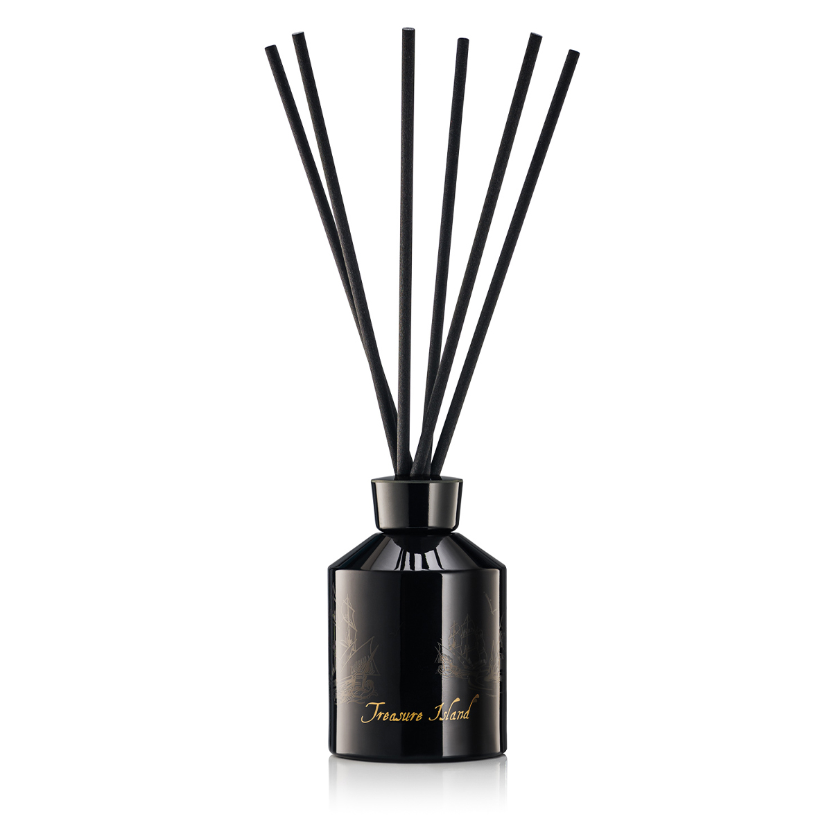 Butelka dyfuzora marki Treasure Island, wykonana z eleganckiego, lakierowanego szkła w głębokim odcieniu czerni, przywodzi na myśl tajemniczą atmosferę morskich przygód. Zdobienia w kolorze złota, w tym unikatowy symbol pirackiej monety, są ukłonem w stronę legendarnych skarbów. Stylowe wykończenie podkreśla luksusowy charakter produktu, a jego design wpisuje się w koncepcję klasyki i wyrafinowanej elegancji. Perfekcyjny wybór dla miłośników niepowtarzalnych zapachów i unikatowego stylu.