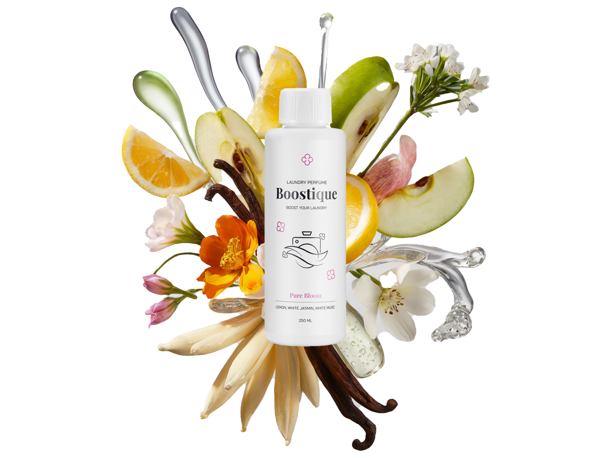 Pure Bloom – perfumy do prania marki BoostiqueOdkryj esencję czystości i elegancji z Pure Bloom – ekskluzywnymi perfumami do prania stworzonymi, by otulić Twoje ubrania delikatnym, świeżym zapachem. Ta wyrafinowana kompozycja łączy w sobie lekkość kwiatów, soczystą owocowość i kremową głębię, tworząc wyjątkowy zapach, który zachwyca swoją subtelnością i trwałością.Zapach otwiera się orzeźwiającą nutą cytryny, delikatnych aldehydów, zielonego jabłka i soczystej brzoskwini – to powiew czystości, który od pierwszej chwili kojarzy się z perfekcyjnie świeżym praniem. W sercu kompozycji rozkwitają eleganckie kwiaty pomarańczy, zmysłowy jaśmin oraz subtelna, lekko różana nuta geranium, które dodają zapachowi kobiecej miękkości i klasy.Bazę tworzy kremowa wanilia, aksamitne drzewo sandałowe i otulający, czysty biały piżmo, które sprawiają, że zapach utrzymuje się długo na tkaninach, pozostawiając delikatny, elegancki ślad.Pure Bloom to doskonały wybór dla tych, którzy cenią świeżość połączoną z nutą luksusu – dla osób, które chcą, aby ich ubrania pachniały tak dobrze, jak wyglądają. Stworzony z wysokiej jakości składników i perfumeryjną precyzją, zapach ten wnosi do codziennej rutyny odrobinę piękna i komfortu.Boost Your Laundry – podnieś jakość prania na nowy poziom z Pure Bloom od Boostique.